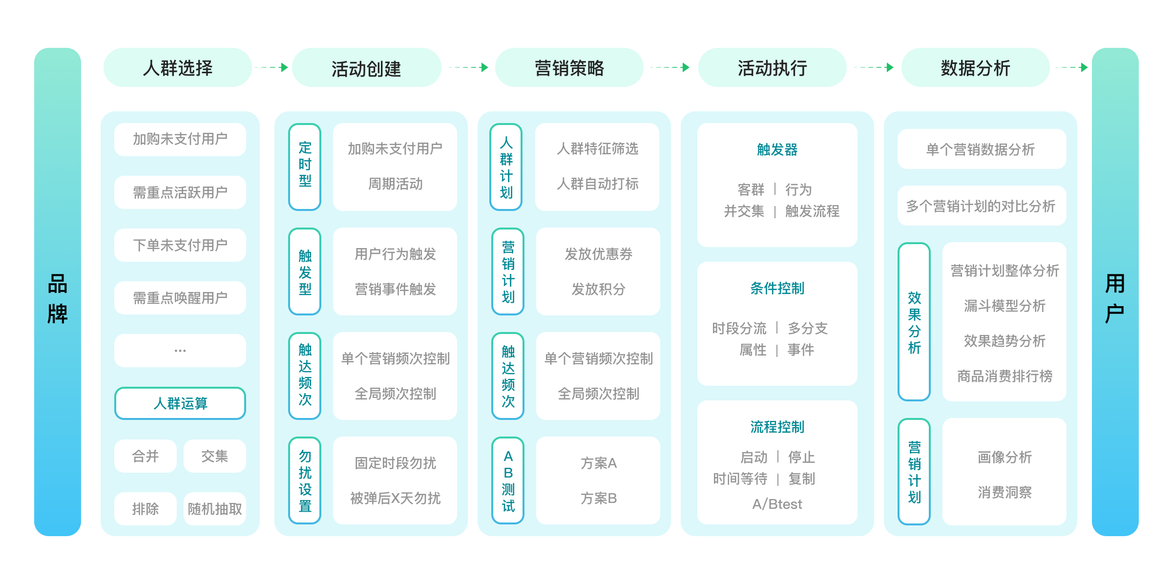 集活动创建、设计、执行、分析、迭代为一体的自动化营销,通过精准触达,提升关键指标和营销效率